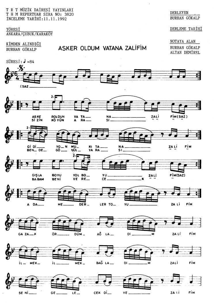 Bu türkünün notasında, sözlerinde veya örnek icrasında bir eksiklik yahut yanlışlık tespit ederseniz, e-mail ile veya WhatsApp hattından bildirim yaparak katkıda bulunabilirsiniz.