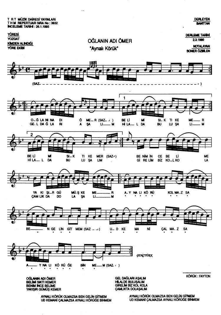Bu türkünün notasında, sözlerinde veya örnek icrasında bir eksiklik yahut yanlışlık tespit ederseniz, e-mail ile veya WhatsApp hattından bildirim yaparak katkıda bulunabilirsiniz.