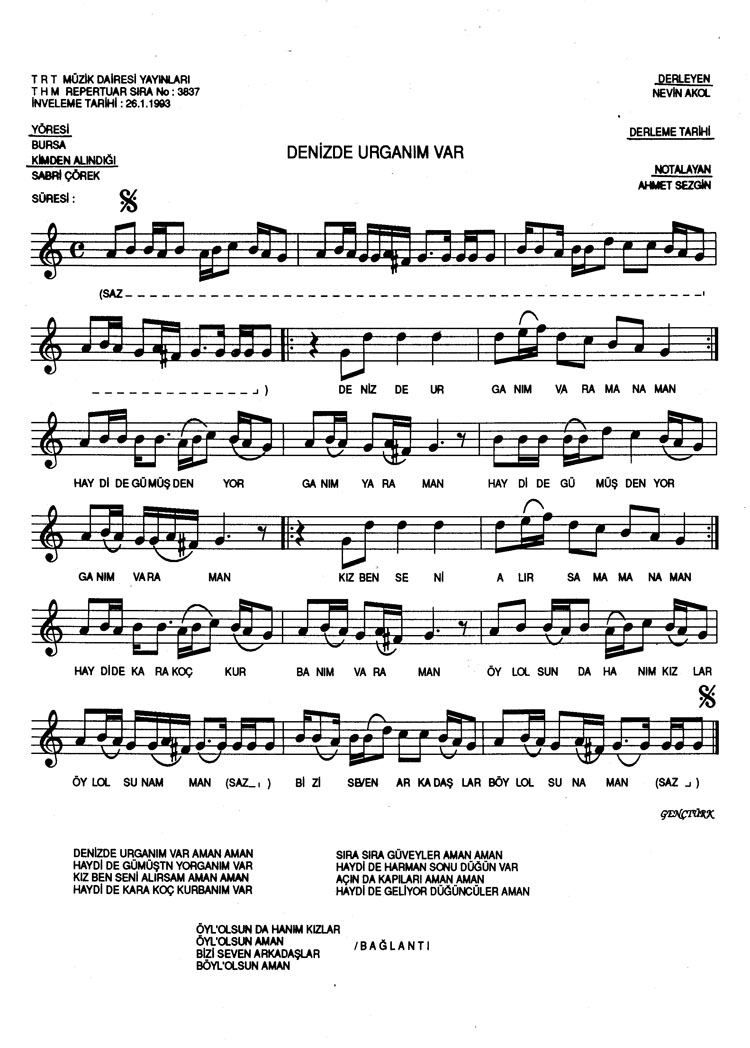 Denizde urganım var (Rep.No: 3837)