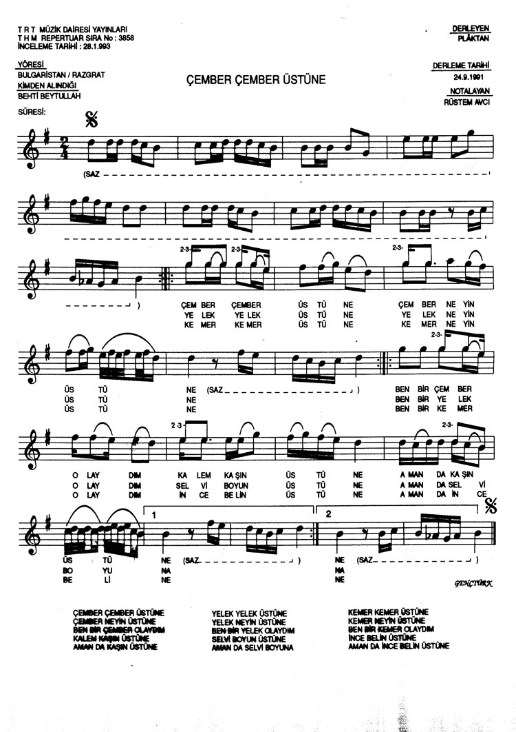 Bu türkünün notasında, sözlerinde veya örnek icrasında bir eksiklik yahut yanlışlık tespit ederseniz, e-mail ile veya WhatsApp hattından bildirim yaparak katkıda bulunabilirsiniz.