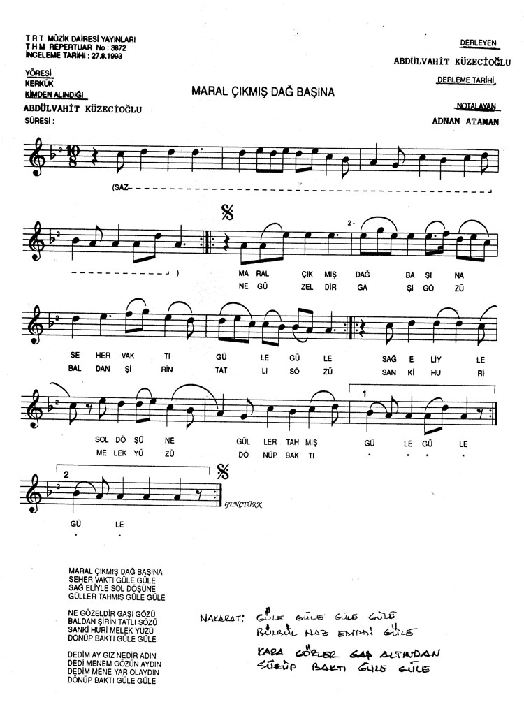Maral çıkmış dağ başına (Rep.No: 3872)