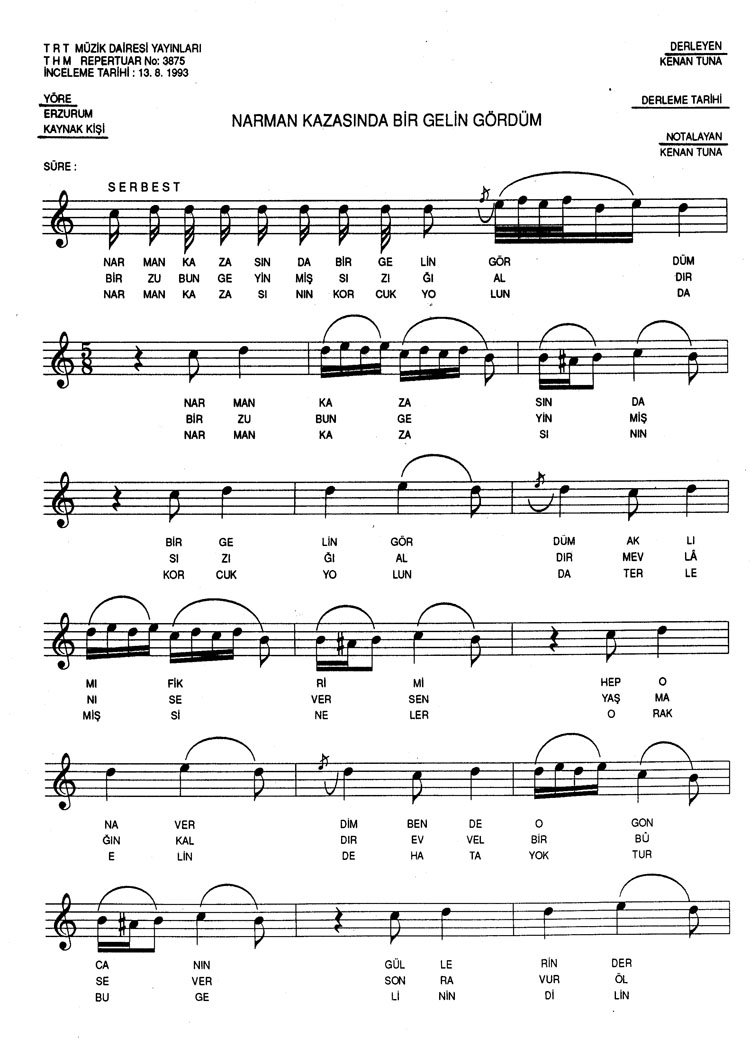 Narman kazasında bir gelin gördüm (Rep.No: 3875)