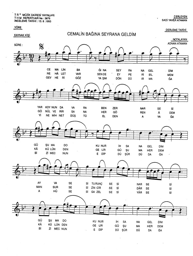 Cemalın bağına seyrana geldim (Rep.No: 3876)
