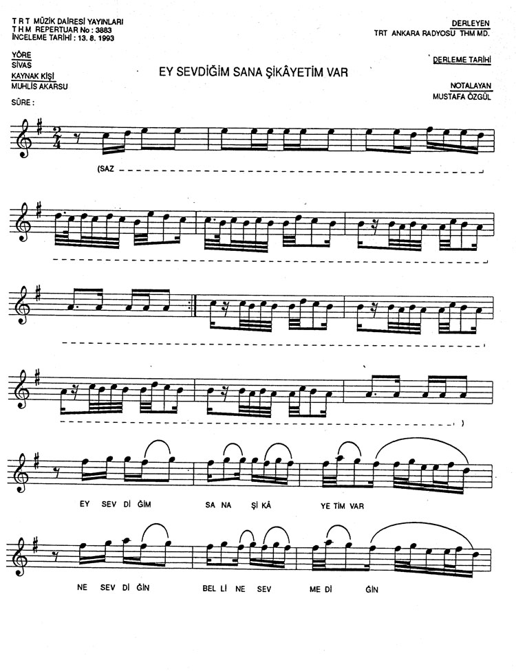 Bu türkünün notasında, sözlerinde veya örnek icrasında bir eksiklik yahut yanlışlık tespit ederseniz, e-mail ile veya WhatsApp hattından bildirim yaparak katkıda bulunabilirsiniz.