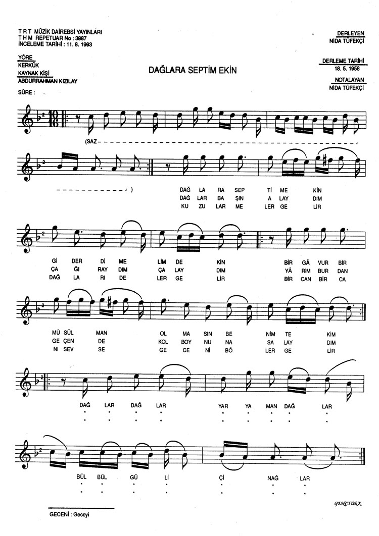 Bu türkünün notasında, sözlerinde veya örnek icrasında bir eksiklik yahut yanlışlık tespit ederseniz, e-mail ile veya WhatsApp hattından bildirim yaparak katkıda bulunabilirsiniz.