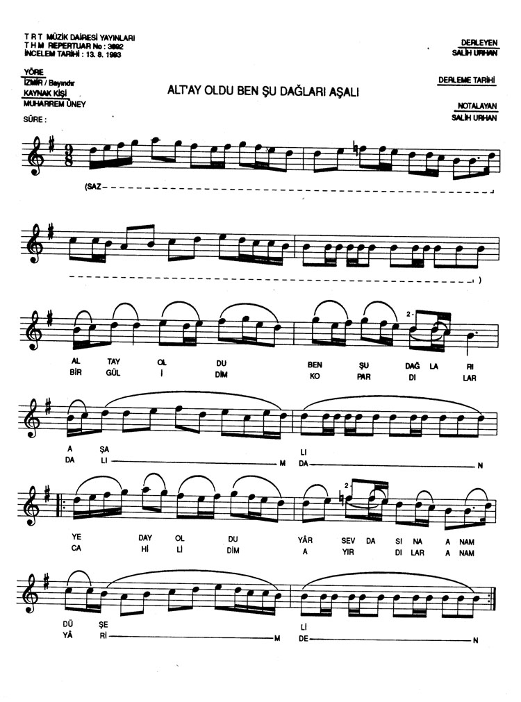 Alt´ay oldu ben şu dağları aşalı (Rep.No: 3892)