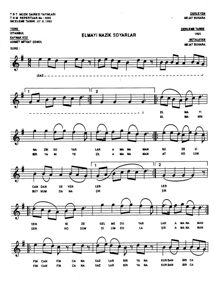 Bu türkünün notasında, sözlerinde veya örnek icrasında bir eksiklik yahut yanlışlık tespit ederseniz, e-mail ile veya WhatsApp hattından bildirim yaparak katkıda bulunabilirsiniz.
