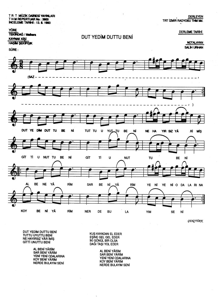 Bu türkünün notasında, sözlerinde veya örnek icrasında bir eksiklik yahut yanlışlık tespit ederseniz, e-mail ile veya WhatsApp hattından bildirim yaparak katkıda bulunabilirsiniz.