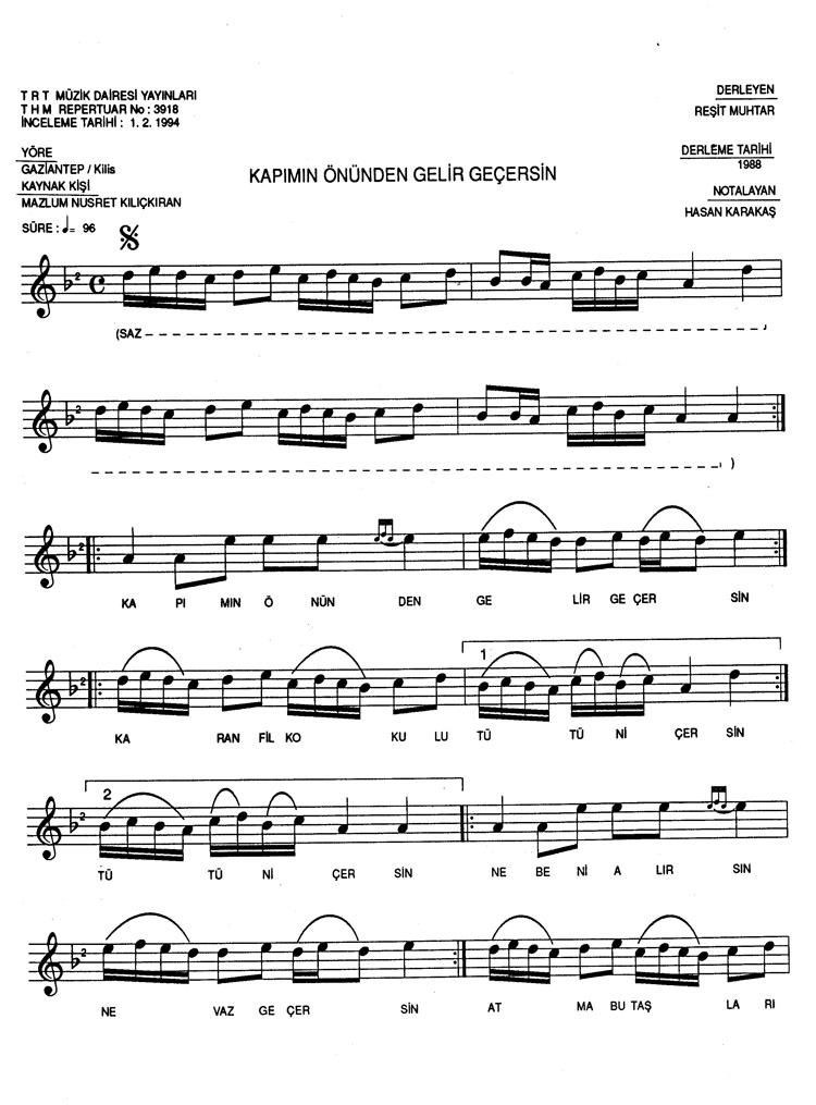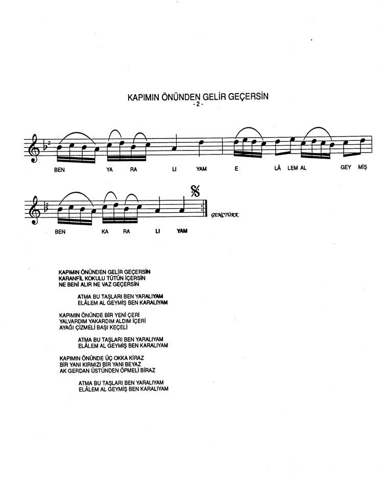 Bu türkünün notasında, sözlerinde veya örnek icrasında bir eksiklik yahut yanlışlık tespit ederseniz, e-mail ile veya WhatsApp hattından bildirim yaparak katkıda bulunabilirsiniz.