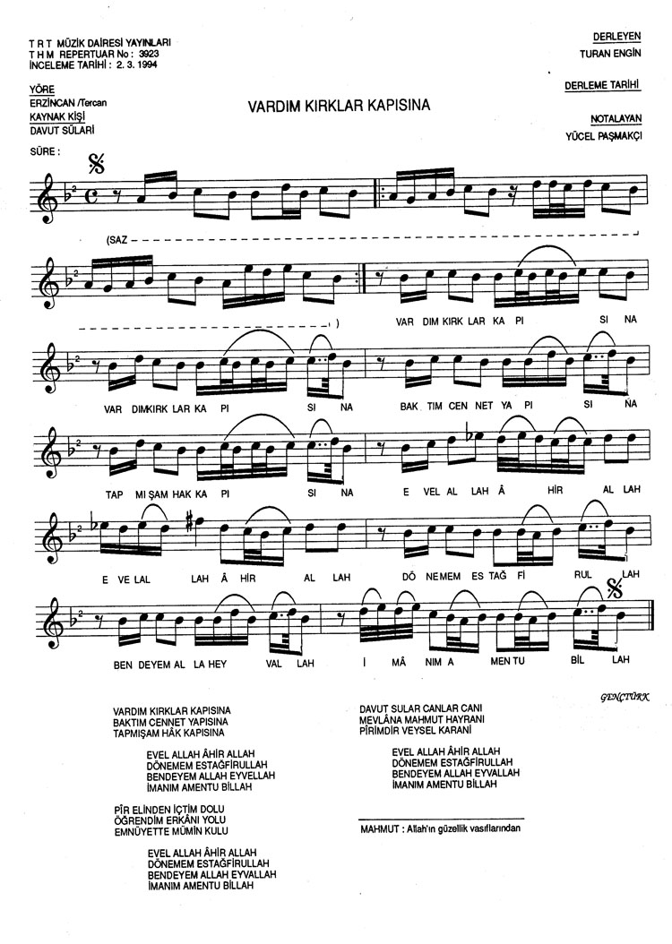 Vardım kırklar kapısına (Rep.No: 3923)