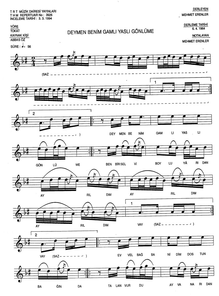 Değmen benim gamlı yaslı gönlüme (Rep.No: 3926)