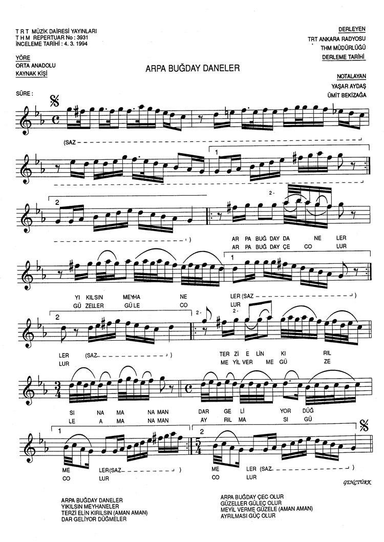 Bu türkünün notasında, sözlerinde veya örnek icrasında bir eksiklik yahut yanlışlık tespit ederseniz, e-mail ile veya WhatsApp hattından bildirim yaparak katkıda bulunabilirsiniz.