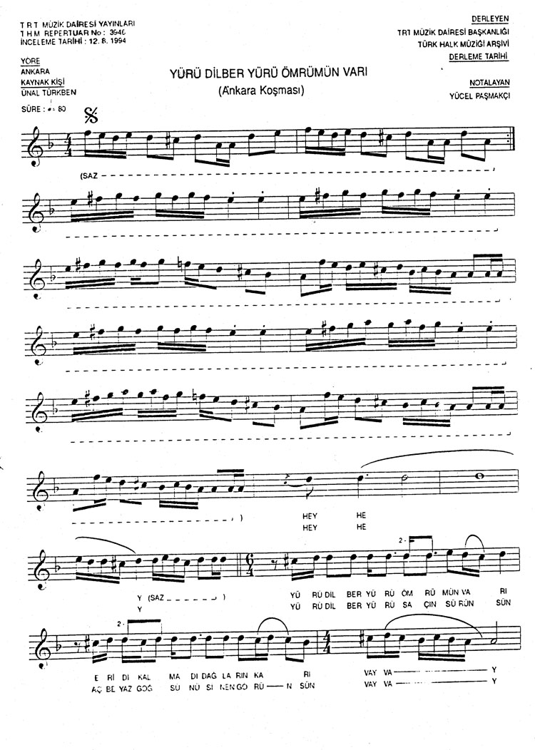 Yürü dilber yürü ömrümün varı (Rep.No: 3946)