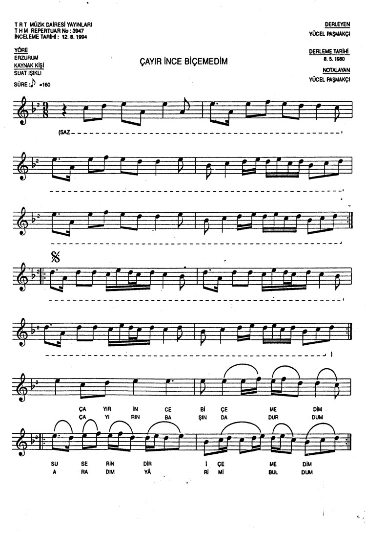 Bu türkünün notasında, sözlerinde veya örnek icrasında bir eksiklik yahut yanlışlık tespit ederseniz, e-mail ile veya WhatsApp hattından bildirim yaparak katkıda bulunabilirsiniz.