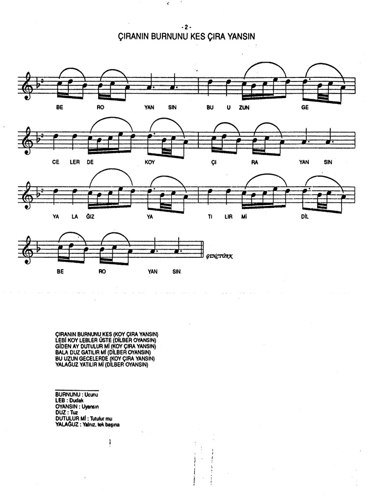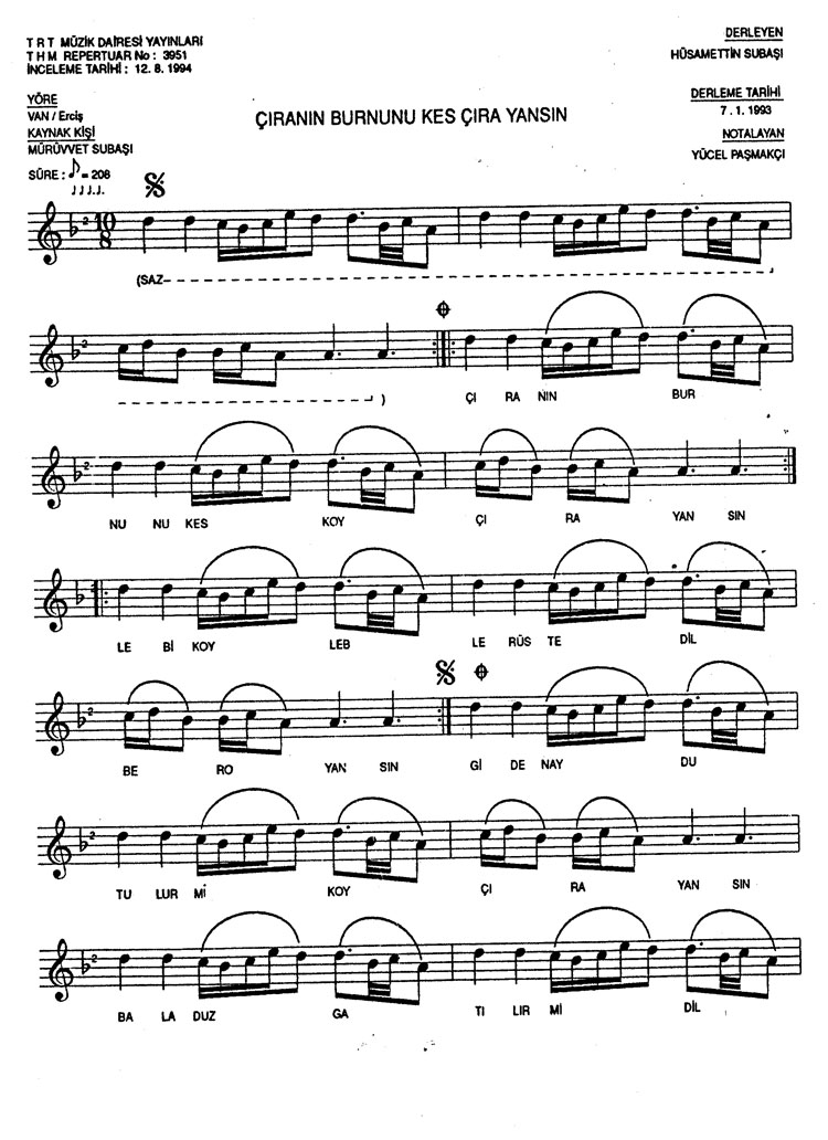 Bu türkünün notasında, sözlerinde veya örnek icrasında bir eksiklik yahut yanlışlık tespit ederseniz, e-mail ile veya WhatsApp hattından bildirim yaparak katkıda bulunabilirsiniz.