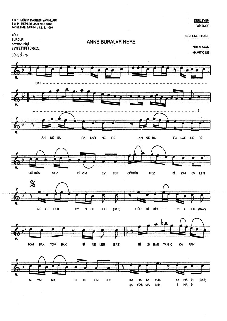 Bu türkünün notasında, sözlerinde veya örnek icrasında bir eksiklik yahut yanlışlık tespit ederseniz, e-mail ile veya WhatsApp hattından bildirim yaparak katkıda bulunabilirsiniz.