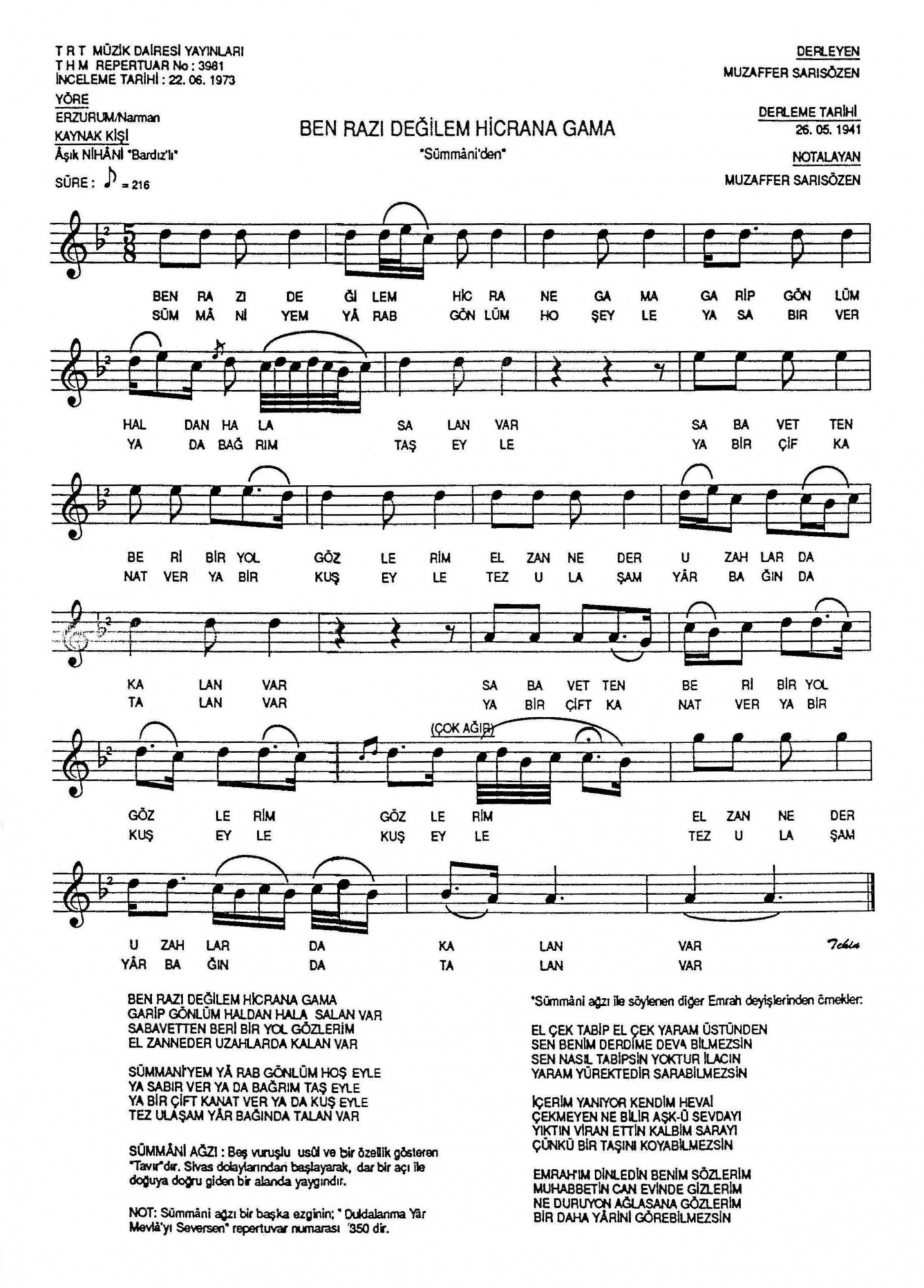 Ben razı değilem hicrana gama (Rep.No: 3981)