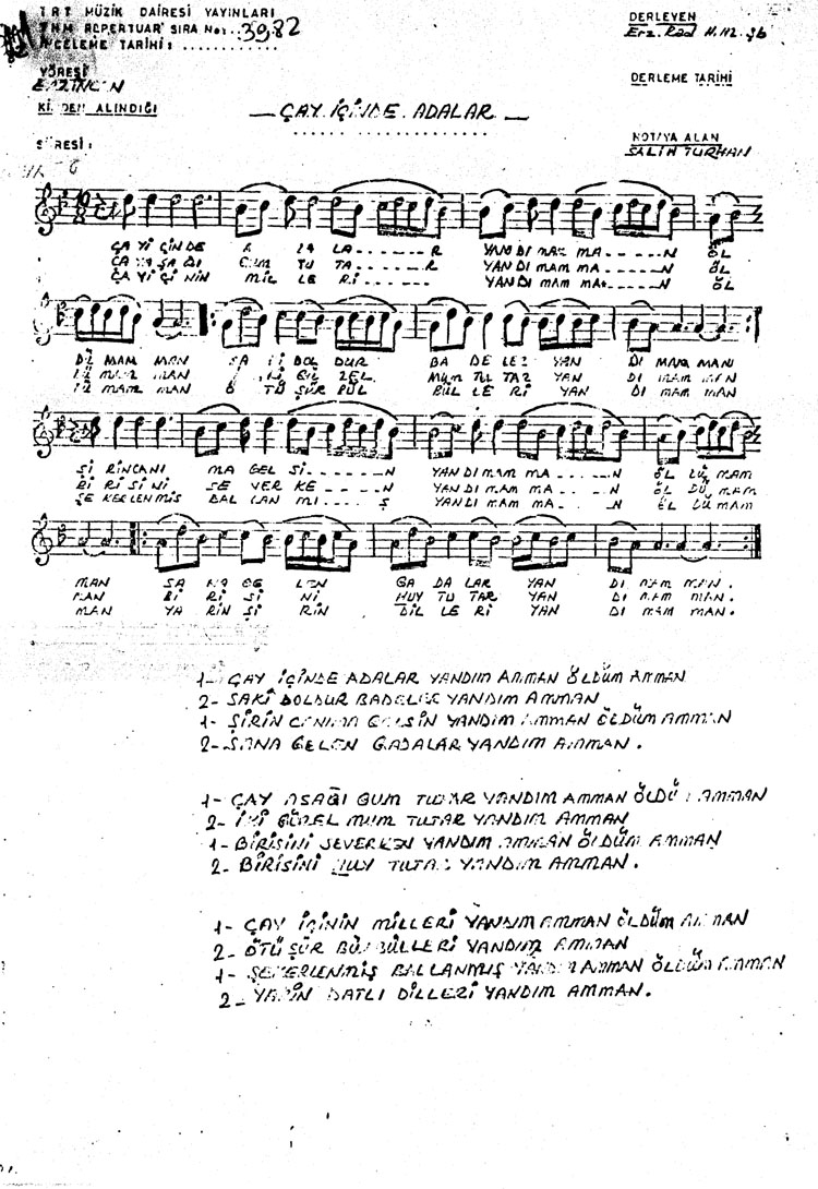 Bu türkünün notasında, sözlerinde veya örnek icrasında bir eksiklik yahut yanlışlık tespit ederseniz, e-mail ile veya WhatsApp hattından bildirim yaparak katkıda bulunabilirsiniz.