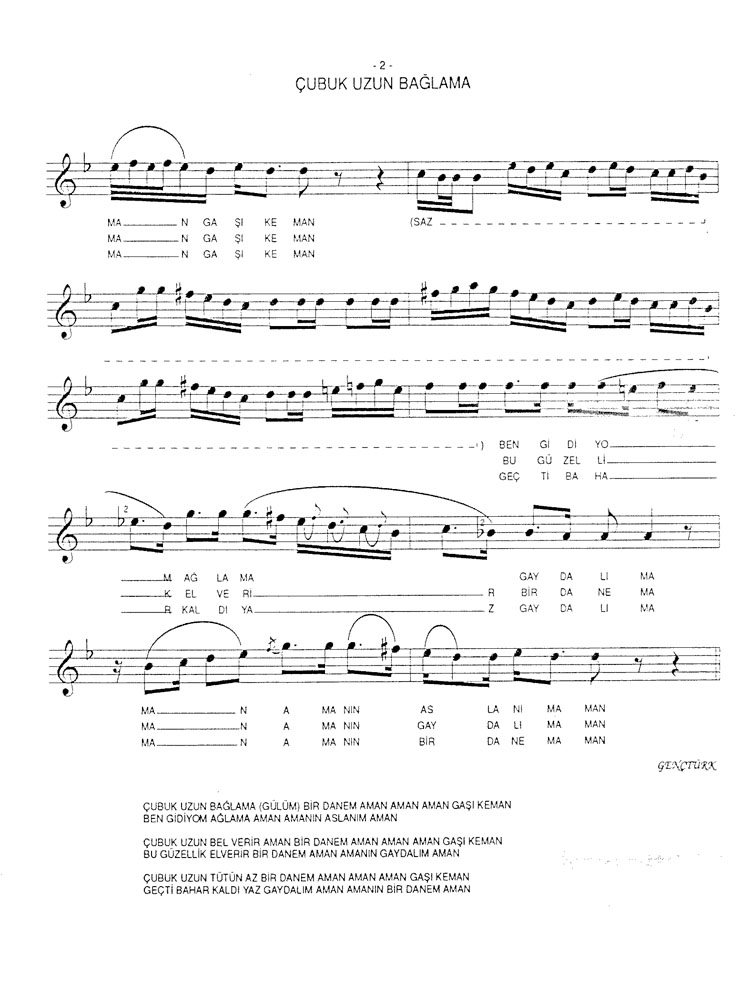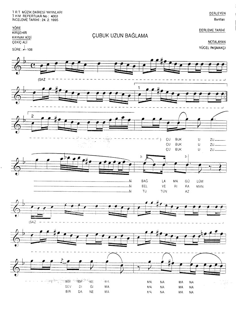 Bu türkünün notasında, sözlerinde veya örnek icrasında bir eksiklik yahut yanlışlık tespit ederseniz, e-mail ile veya WhatsApp hattından bildirim yaparak katkıda bulunabilirsiniz.