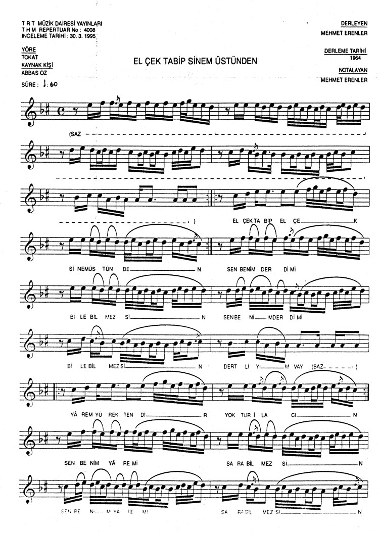 Bu türkünün notasında, sözlerinde veya örnek icrasında bir eksiklik yahut yanlışlık tespit ederseniz, e-mail ile veya WhatsApp hattından bildirim yaparak katkıda bulunabilirsiniz.