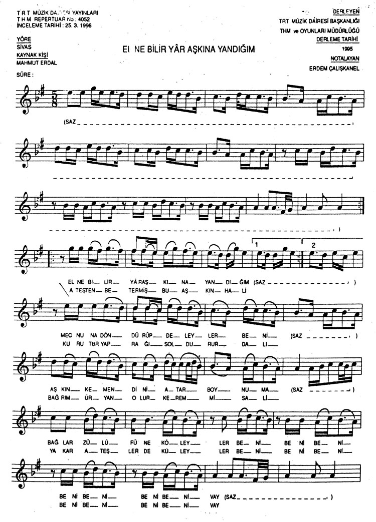 El ne bilir yar aşkına yandığım (Rep.No: 4052)