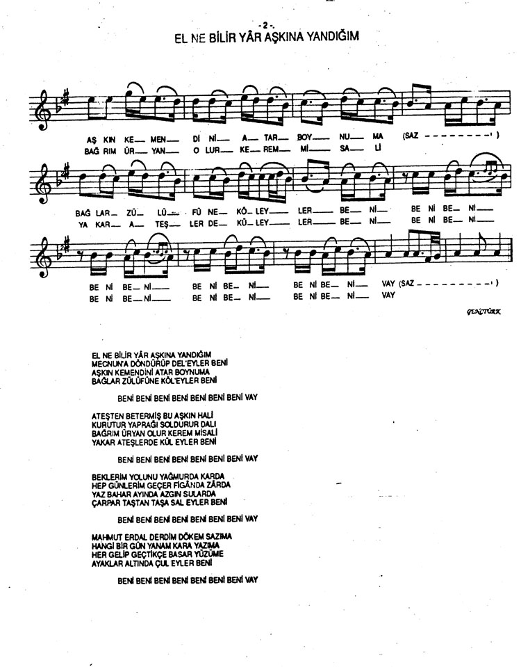 Bu türkünün notasında, sözlerinde veya örnek icrasında bir eksiklik yahut yanlışlık tespit ederseniz, e-mail ile veya WhatsApp hattından bildirim yaparak katkıda bulunabilirsiniz.