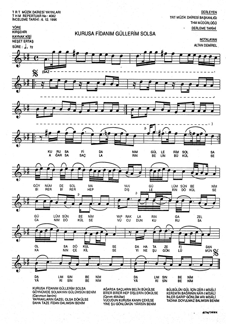 Kurusa fidanım güllerim solsa (Rep.No: 4082)