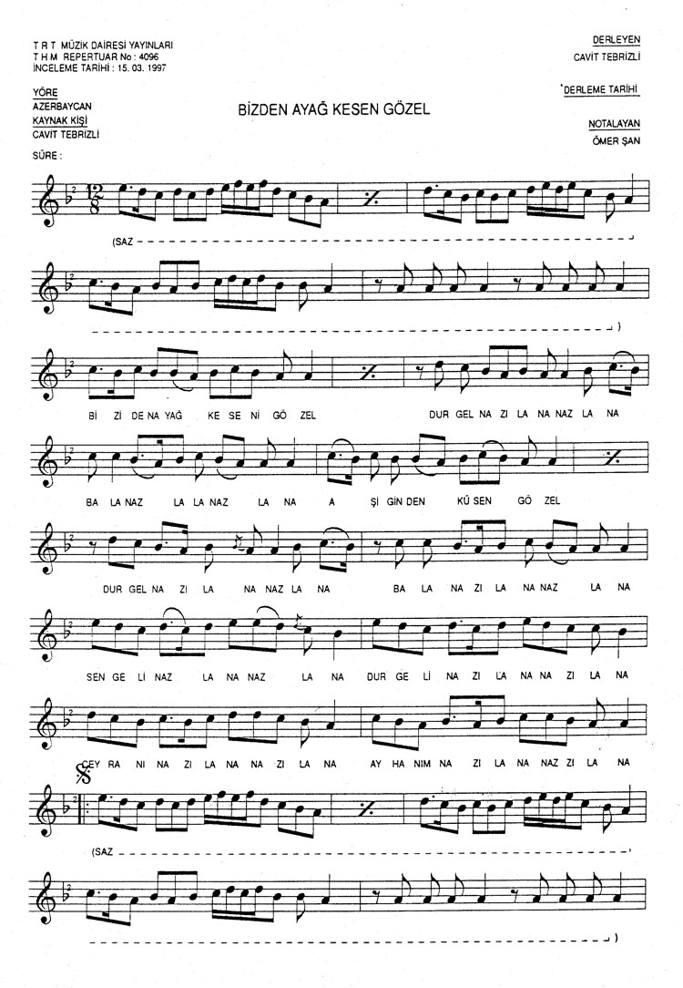 Bizden ayağ kesen gözel (Rep.No: 4096)