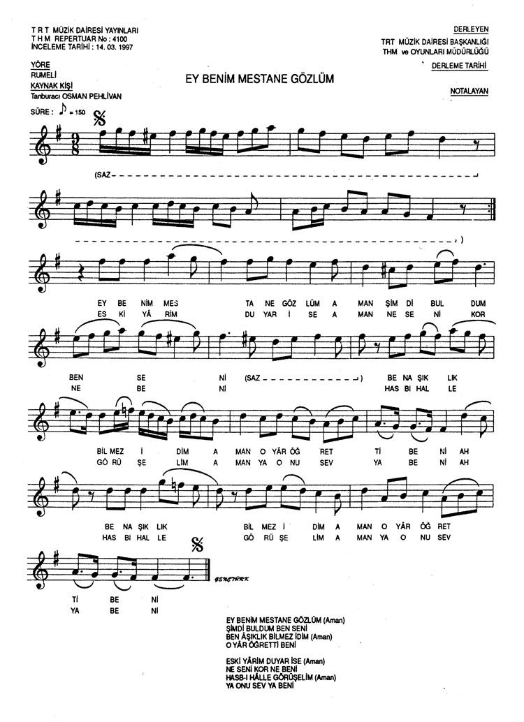 Ey benim mestane gözlüm (Rep.No: 4100)