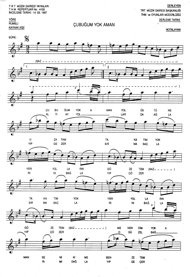 Bu türkünün notasında, sözlerinde veya örnek icrasında bir eksiklik yahut yanlışlık tespit ederseniz, e-mail ile veya WhatsApp hattından bildirim yaparak katkıda bulunabilirsiniz.