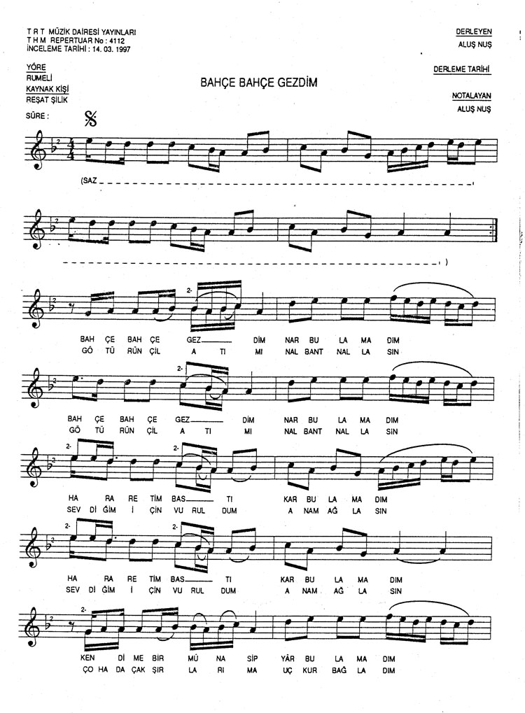 Bu türkünün notasında, sözlerinde veya örnek icrasında bir eksiklik yahut yanlışlık tespit ederseniz, e-mail ile veya WhatsApp hattından bildirim yaparak katkıda bulunabilirsiniz.
