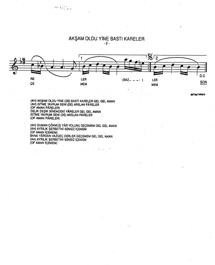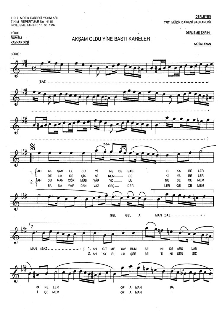 Bu türkünün notasında, sözlerinde veya örnek icrasında bir eksiklik yahut yanlışlık tespit ederseniz, e-mail ile veya WhatsApp hattından bildirim yaparak katkıda bulunabilirsiniz.