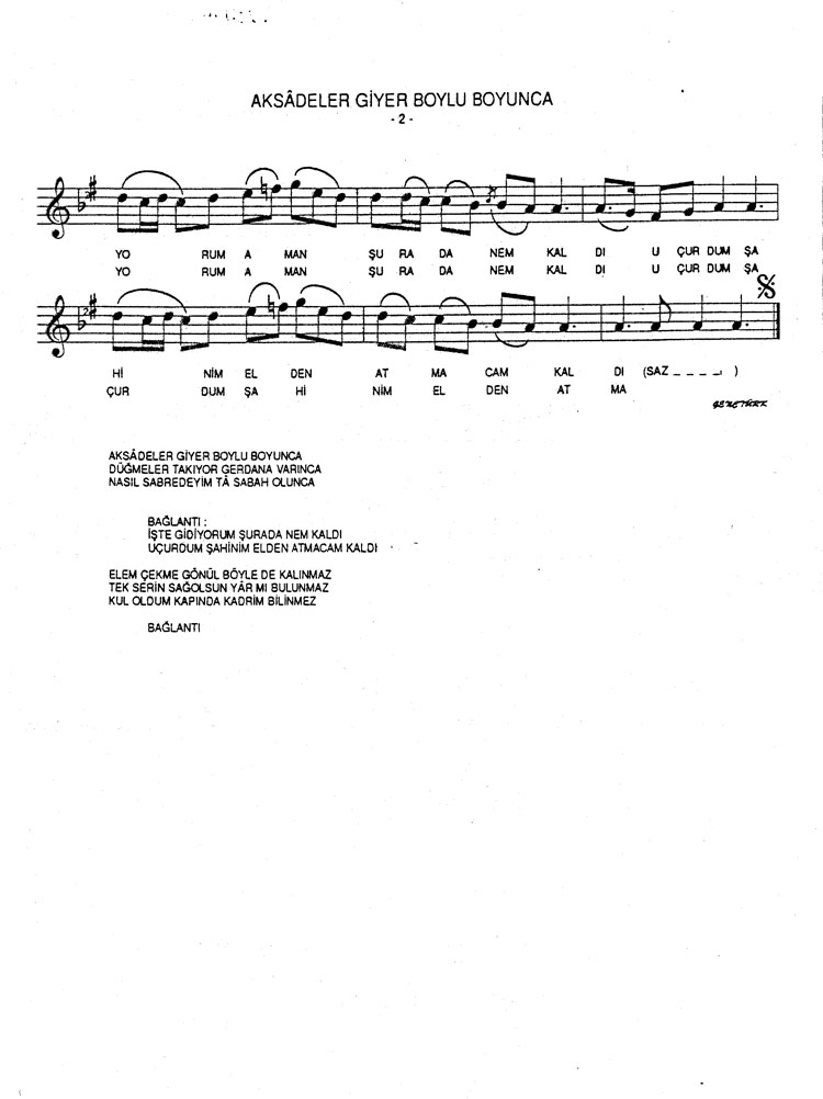 Bu türkünün notasında, sözlerinde veya örnek icrasında bir eksiklik yahut yanlışlık tespit ederseniz, e-mail ile veya WhatsApp hattından bildirim yaparak katkıda bulunabilirsiniz.