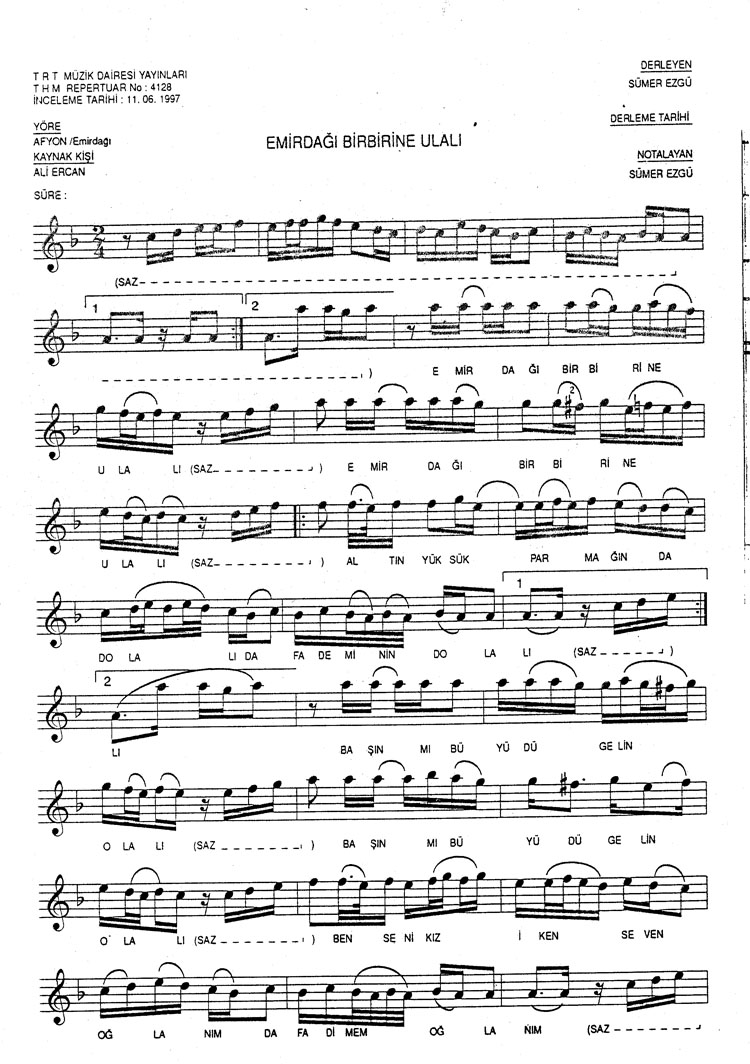 Bu türkünün notasında, sözlerinde veya örnek icrasında bir eksiklik yahut yanlışlık tespit ederseniz, e-mail ile veya WhatsApp hattından bildirim yaparak katkıda bulunabilirsiniz.
