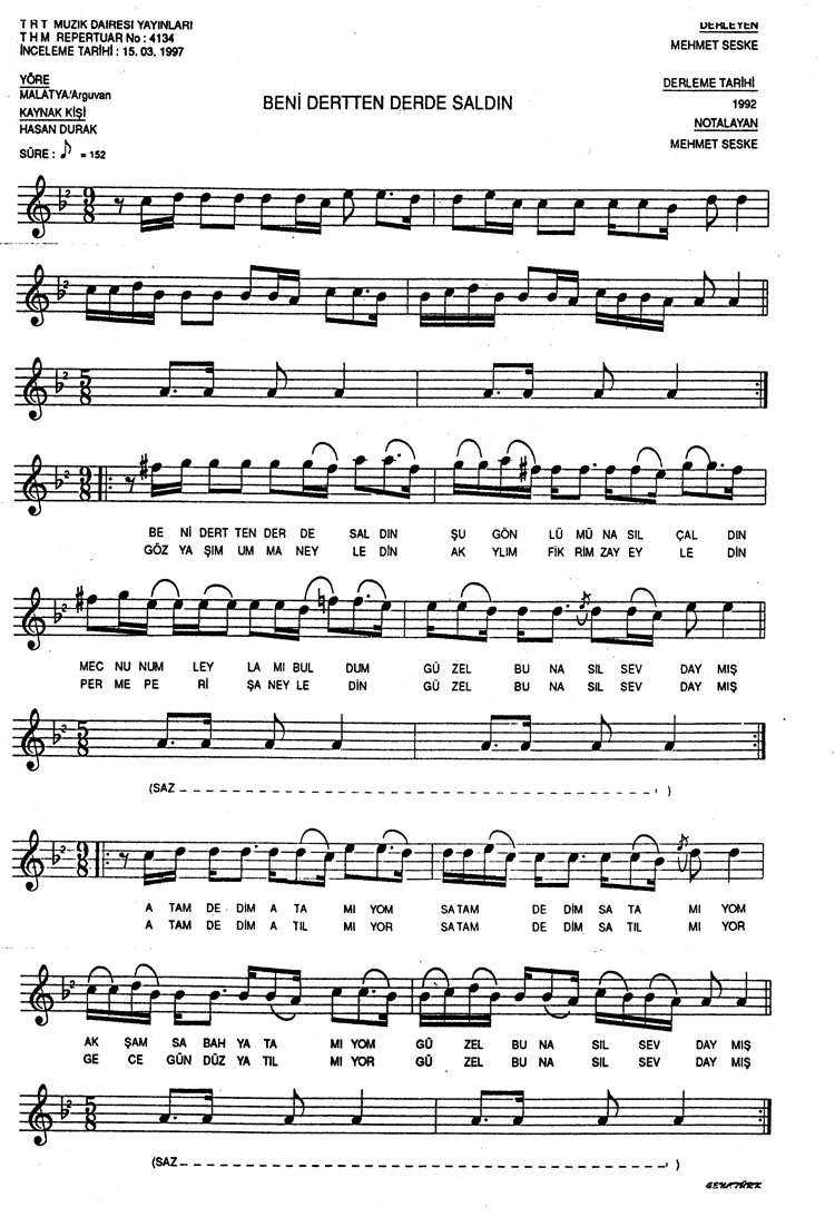 Bu türkünün notasında, sözlerinde veya örnek icrasında bir eksiklik yahut yanlışlık tespit ederseniz, e-mail ile veya WhatsApp hattından bildirim yaparak katkıda bulunabilirsiniz.