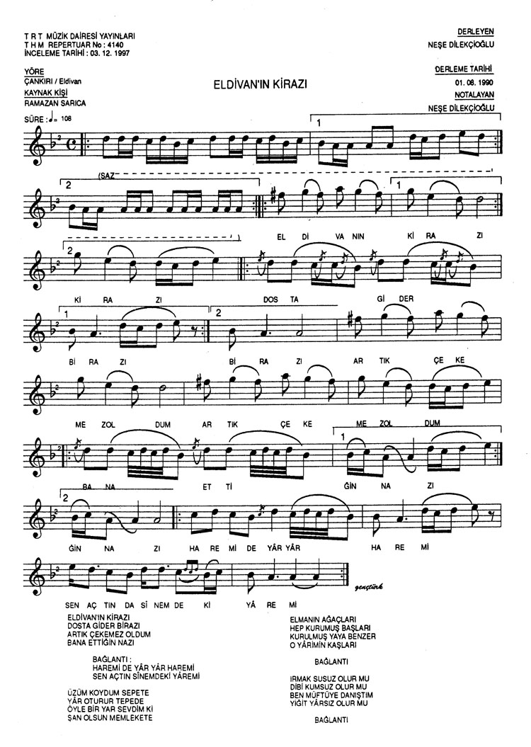 Bu türkünün notasında, sözlerinde veya örnek icrasında bir eksiklik yahut yanlışlık tespit ederseniz, e-mail ile veya WhatsApp hattından bildirim yaparak katkıda bulunabilirsiniz.
