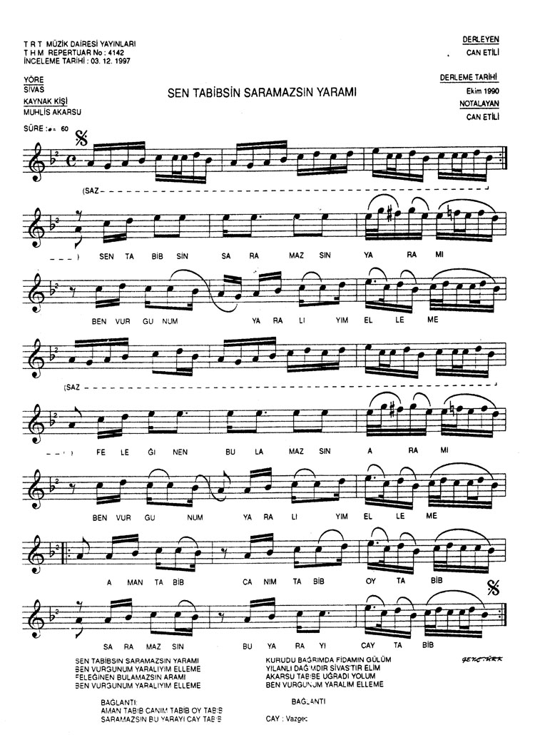 Sen tabibsin saramazsın yaramı (Rep.No: 4142)