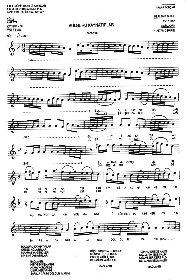 Bu türkünün notasında, sözlerinde veya örnek icrasında bir eksiklik yahut yanlışlık tespit ederseniz, e-mail ile veya WhatsApp hattından bildirim yaparak katkıda bulunabilirsiniz.