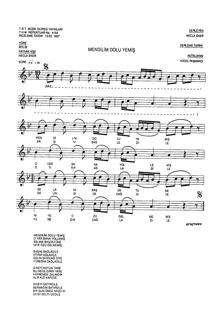 Bu türkünün notasında, sözlerinde veya örnek icrasında bir eksiklik yahut yanlışlık tespit ederseniz, e-mail ile veya WhatsApp hattından bildirim yaparak katkıda bulunabilirsiniz.