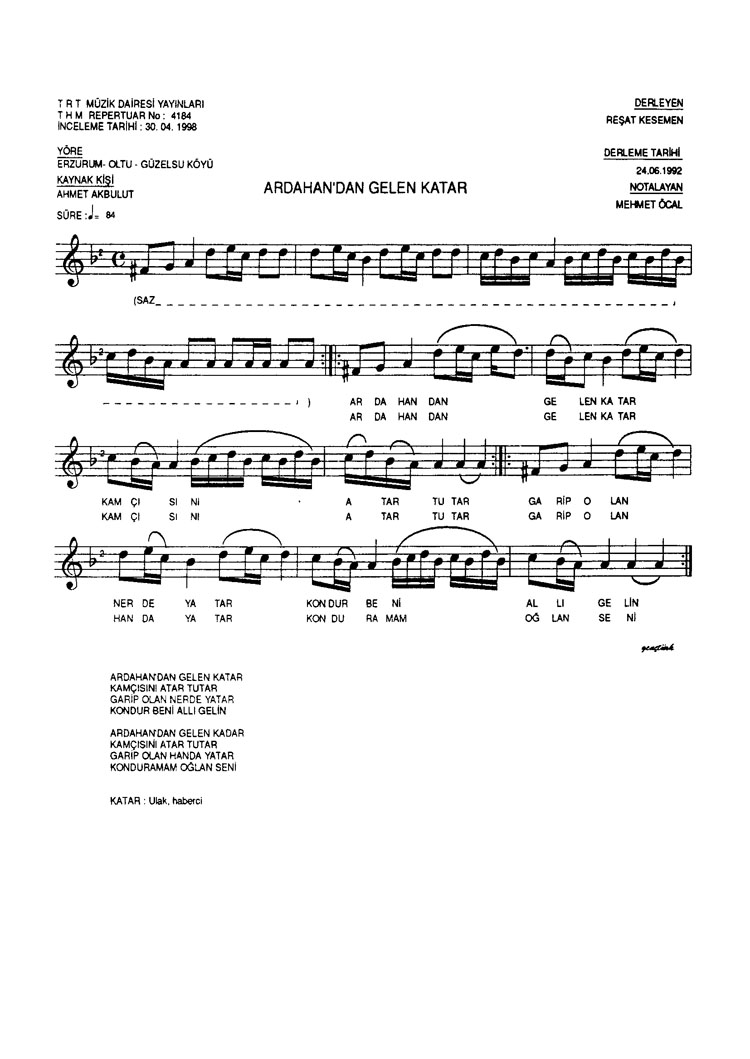 Bu türkünün notasında, sözlerinde veya örnek icrasında bir eksiklik yahut yanlışlık tespit ederseniz, e-mail ile veya WhatsApp hattından bildirim yaparak katkıda bulunabilirsiniz.