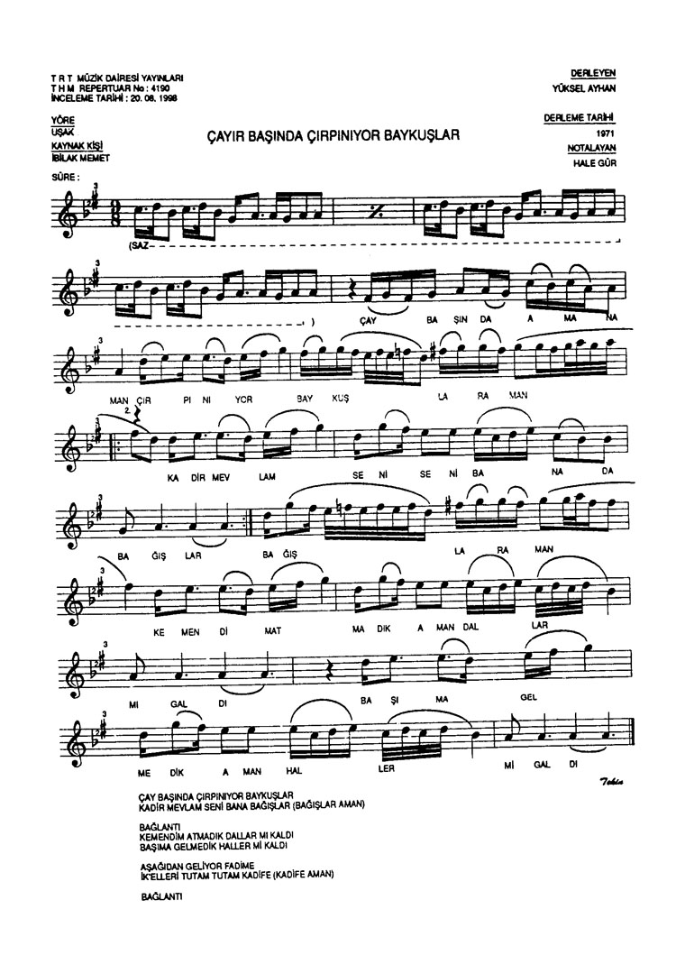 Bu türkünün notasında, sözlerinde veya örnek icrasında bir eksiklik yahut yanlışlık tespit ederseniz, e-mail ile veya WhatsApp hattından bildirim yaparak katkıda bulunabilirsiniz.