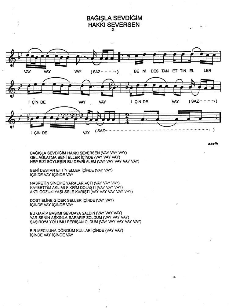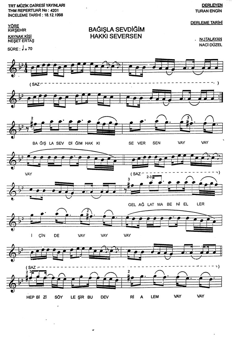 Bu türkünün notasında, sözlerinde veya örnek icrasında bir eksiklik yahut yanlışlık tespit ederseniz, e-mail ile veya WhatsApp hattından bildirim yaparak katkıda bulunabilirsiniz.