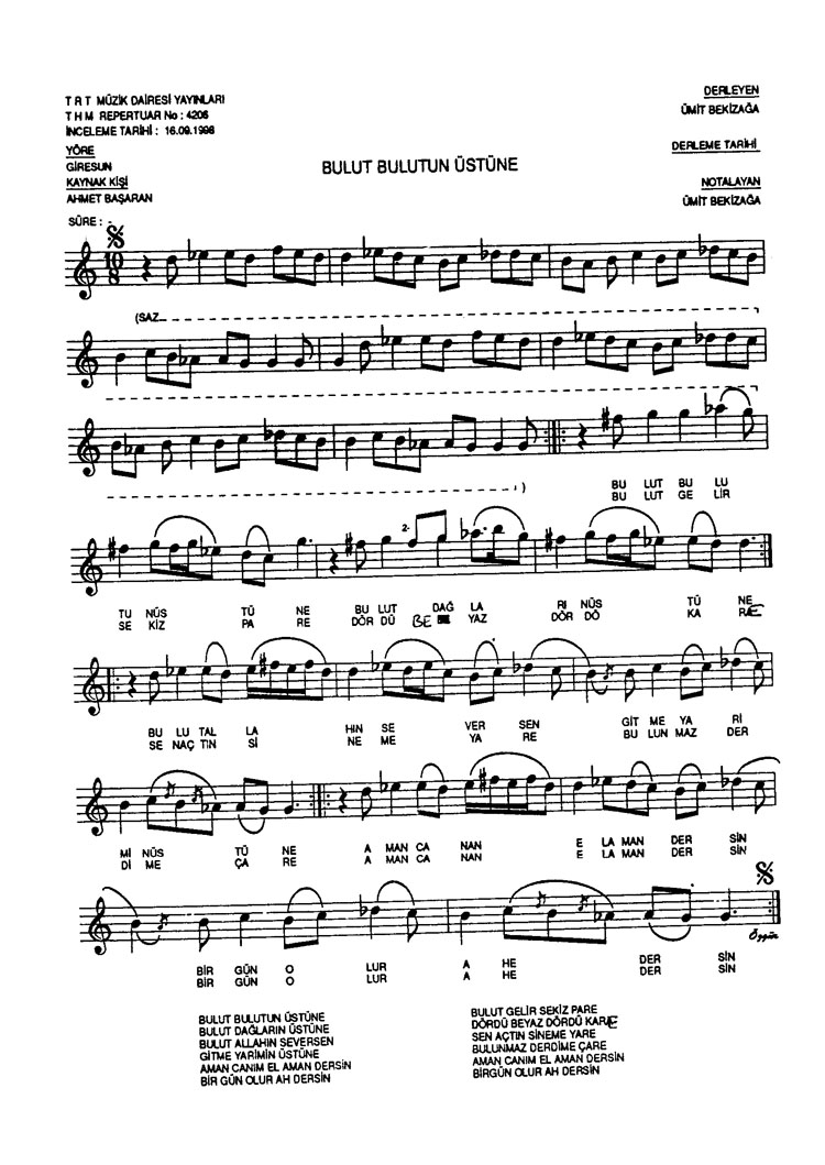 Bu türkünün notasında, sözlerinde veya örnek icrasında bir eksiklik yahut yanlışlık tespit ederseniz, e-mail ile veya WhatsApp hattından bildirim yaparak katkıda bulunabilirsiniz.