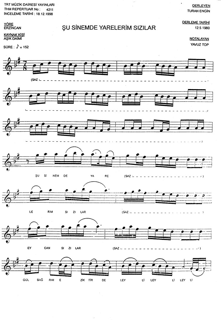 Bu türkünün notasında, sözlerinde veya örnek icrasında bir eksiklik yahut yanlışlık tespit ederseniz, e-mail ile veya WhatsApp hattından bildirim yaparak katkıda bulunabilirsiniz.