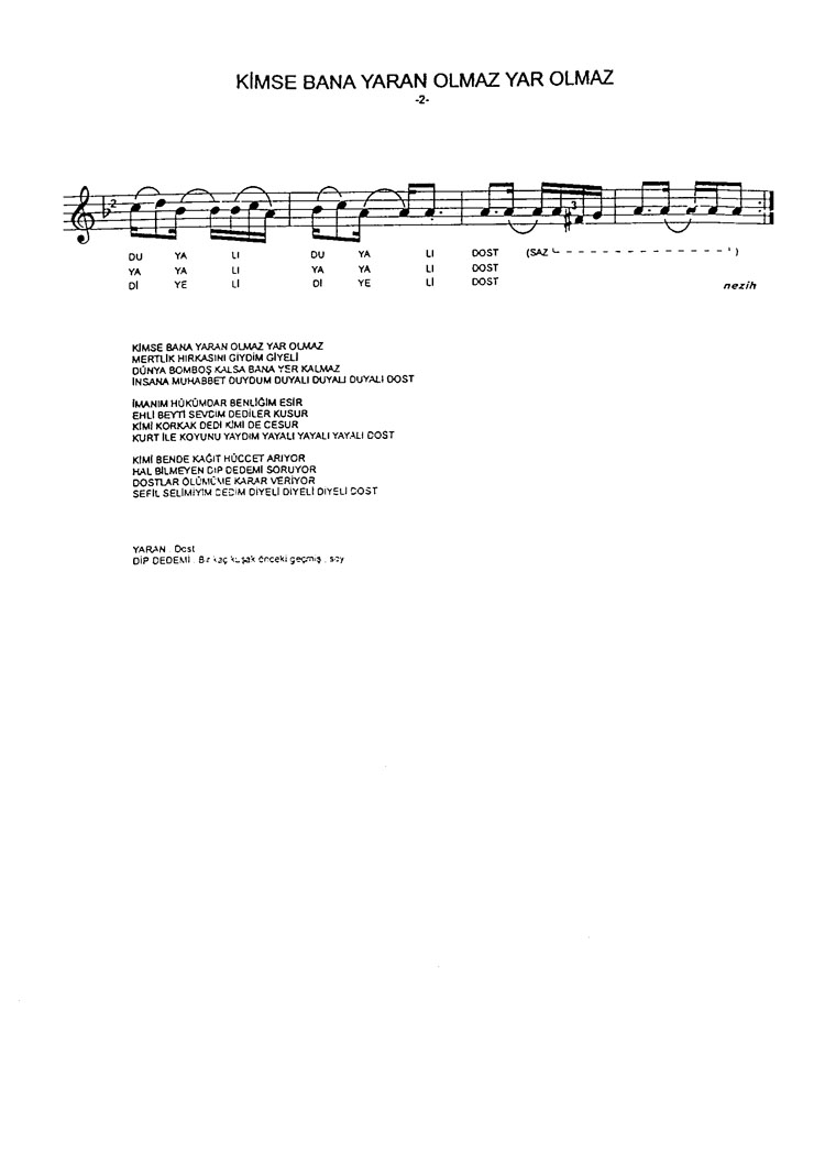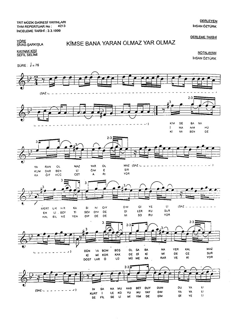 Kimse bana yaran olmaz yar olmaz (Rep.No: 4213)