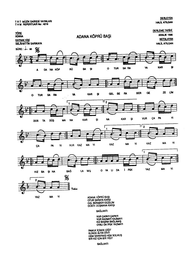 Bu türkünün notasında, sözlerinde veya örnek icrasında bir eksiklik yahut yanlışlık tespit ederseniz, e-mail ile veya WhatsApp hattından bildirim yaparak katkıda bulunabilirsiniz.
