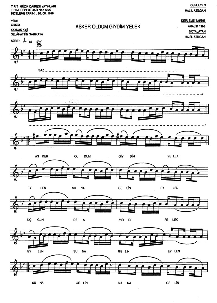 Bu türkünün notasında, sözlerinde veya örnek icrasında bir eksiklik yahut yanlışlık tespit ederseniz, e-mail ile veya WhatsApp hattından bildirim yaparak katkıda bulunabilirsiniz.