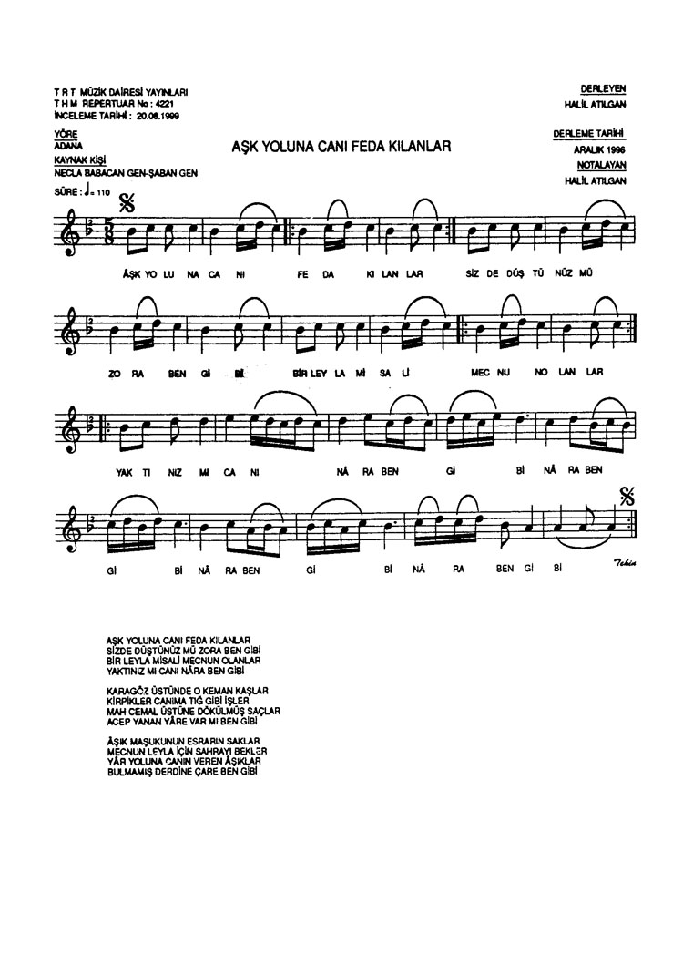 Bu türkünün notasında, sözlerinde veya örnek icrasında bir eksiklik yahut yanlışlık tespit ederseniz, e-mail ile veya WhatsApp hattından bildirim yaparak katkıda bulunabilirsiniz.