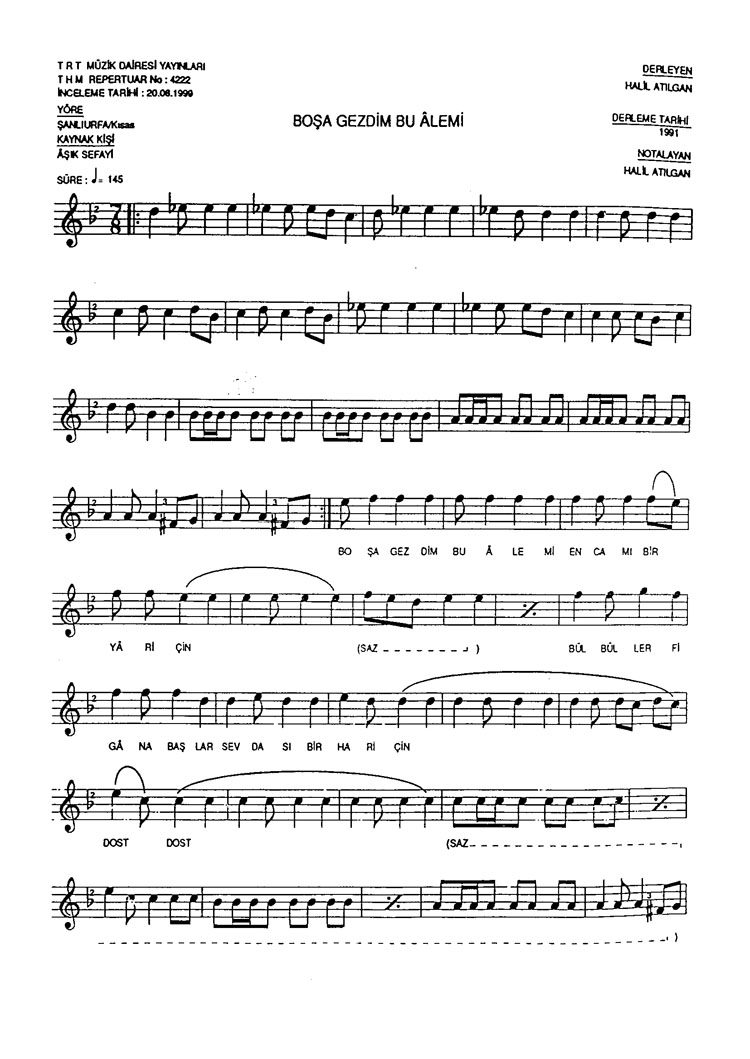 Boşa gezdim bu alemi (Rep.No: 4222)