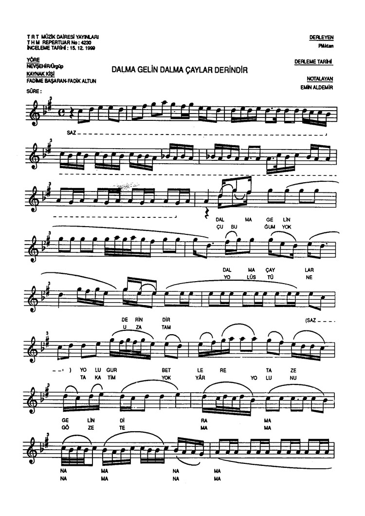 Dalma gelin dalma çaylar derindir (Rep.No: 4230)
